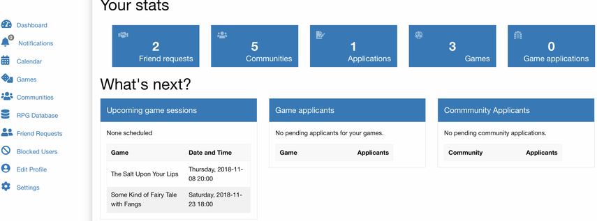 You'll find tools for managing gaming communities, posting and managing games and their schedules, adventure logs for your gaming sessions, and an ever growing database of RPG games, sourcebooks, and modules.